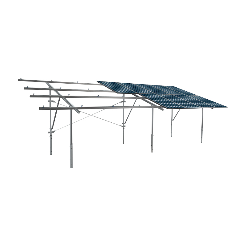 Ang dobleng haligi ng pag -mount ng PV ay nagpatibay ng isang simetriko na dobleng istraktura ng haligi, at ang pangkalahatang rigidity ay pinahusay ng mga transverse connectors. Ang pagganap ng pag-load at paglaban sa hangin ay makabuluhang mas mahusay kaysa sa isang solong haligi. Ang pangunahing katawan ay galvanized steel o aluminyo haluang metal, na angkop para sa malaking pag-aayos ng sangkap na sangkap at disenyo ng mataas na anggulo. Ang pundasyon ay maaaring magamit ng mga naka -embed na tambak o kongkreto na mga pier. Ito ay angkop para sa mga bulubunduking at baybayin na lugar na may mataas na presyon ng hangin o mabigat na pag -load ng niyebe, tinitiyak ang katatagan ng istasyon ng kuryente sa buong siklo ng buhay nito.