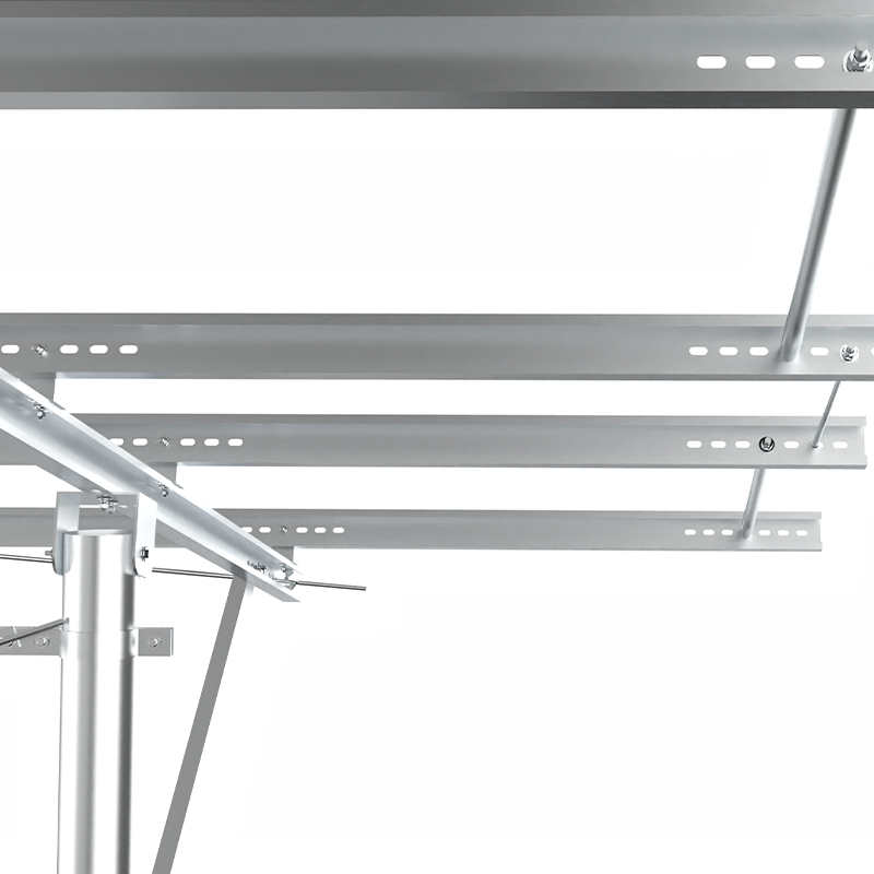 Ang solong haligi ng pag -mount ng PV ay gumagamit ng mga independiyenteng mga haligi bilang pangunahing suporta, na may isang simpleng istraktura at matipid na materyales, na angkop para sa mga mababang slope o flat terrain. Sa pamamagitan ng malakas na paglaban ng kaagnasan, at ang dayagonal brace reinforcement ay nagpapabuti sa kakayahang pigilan ang mga hangin sa gilid. Ito ay angkop para sa maliit at katamtamang laki ng mga istasyon ng kapangyarihan ng lupa o ipinamamahagi na mga proyekto, at parehong matipid at madaling i-install, lalo na ang angkop para sa mga eksena na may pantay na ilaw at mababang pag-load ng hangin.